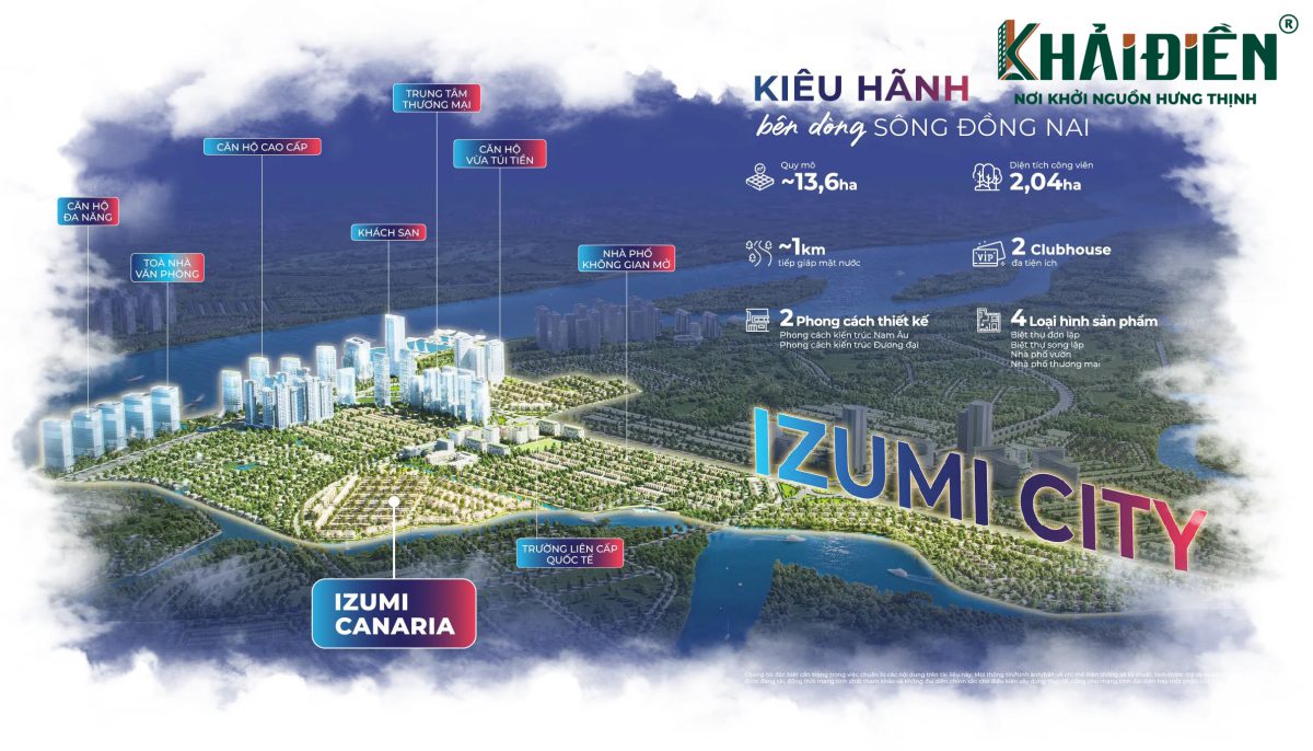 Khu Izumi City Canaria là phân khu điển hình, thể hiện triết lý sống xanh – nơi mỗi biệt thự, nhà phố được bao quanh bởi công viên, hồ nước và cảnh quan đa tầng sinh thái.