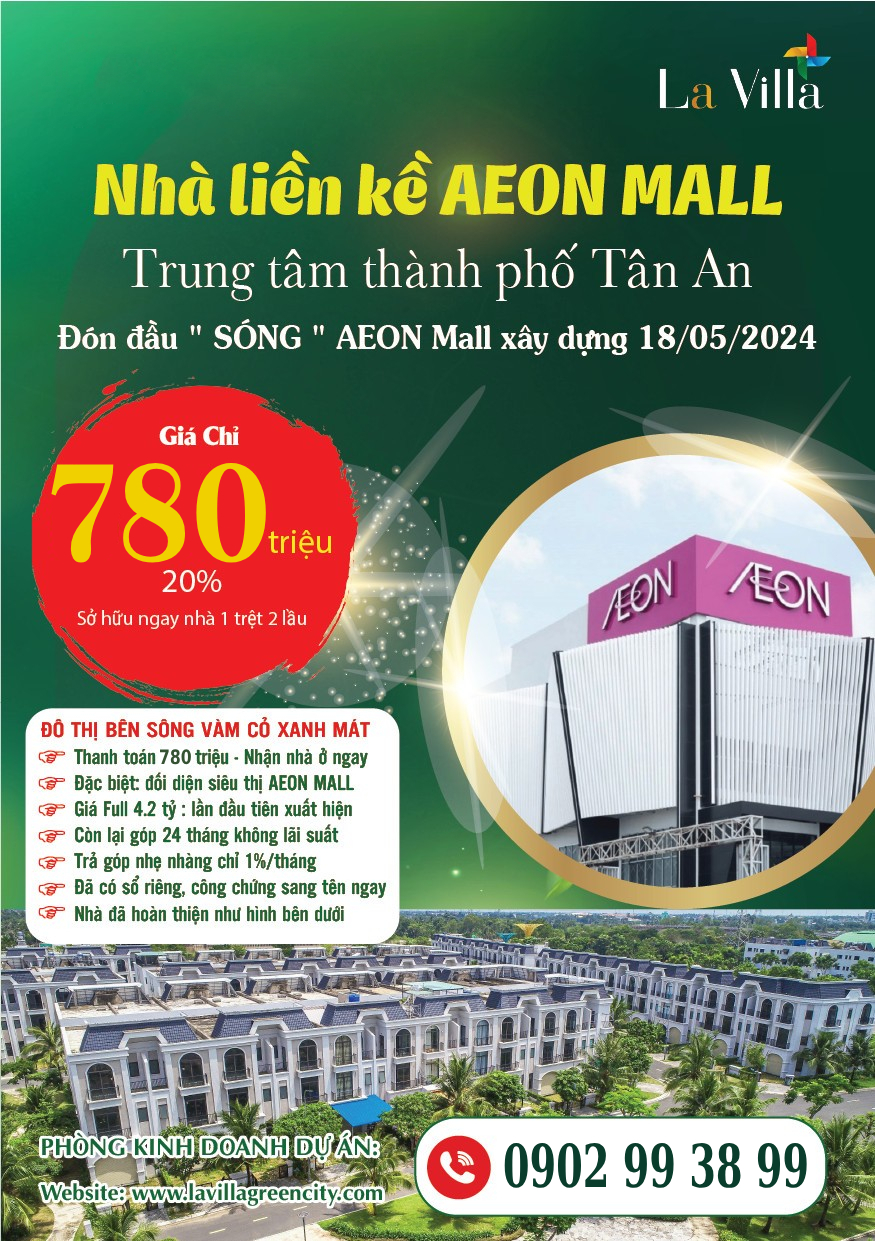 Nổi bật vượt trội giữa giao lộ ‘siêu đắc địa’, La Villa Green City được bao bọc bởi những dịch vụ tiện ích hoàn hảo. Đặc biệt, AEON Mall có vị trí nằm đối diện dự án làm tăng thêm sức hút tại khu vực này.